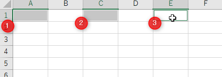 [A1]をクリック→キーボードの[Ctrl]を押しながら[C1]をクリック→ [Ctrl]を押しながら[E1]をクリック