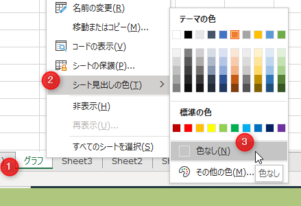 シート見出しを右クリック→[シート見出しの色]→[色なし]をクリック