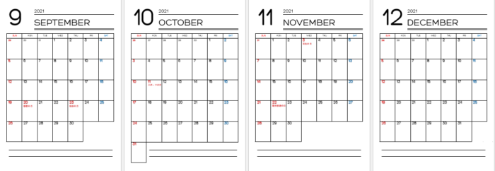 書き込みスペースを大きく取り、余計な装飾を無くしたシンプルデザインです。