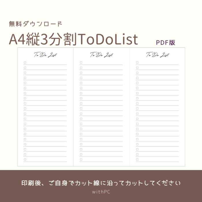 ToDoList シンプル A4縦長3分割PDF の無料ダウンロード