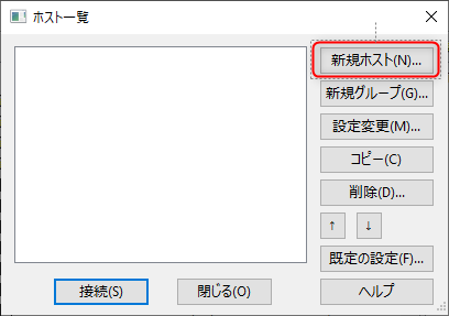 初めて起動すると設定画面になるので「新規ホスト」をクリック
