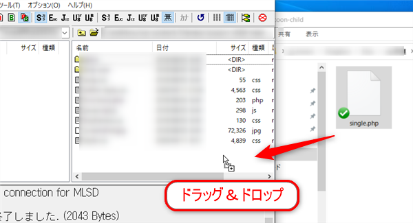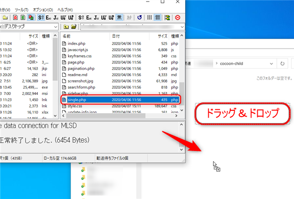 サーバー上からPCにダウンロードしたい場合は、FFFTPとPCのエクスプローラーを開いてドラッグ&ドロップでダウンロードできます。