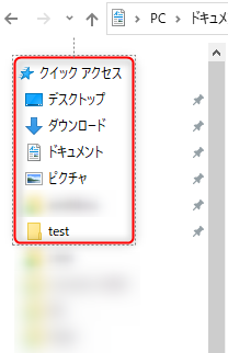 今回はドキュメントの「test」フォルダを「クイックアクセス」に登録します。