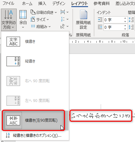横書きですが文字は90度回転されます。
