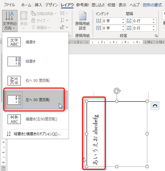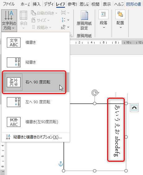 文字列の方向の設定