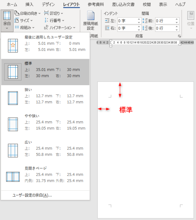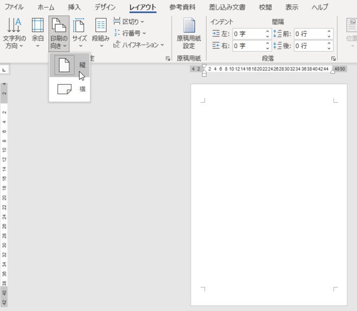 また、初期設定では文字は横書き、用紙は縦、余白は標準(一般的な余白サイズ)となっていますが、文字を縦書きにしたり、用紙を横に配置、余白を狭くしたりすることが簡単に行えます。