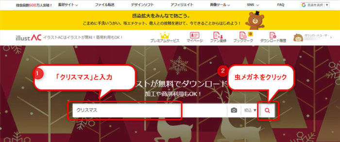 イラストACでクリスマスカードに使えそうなイラストを探す