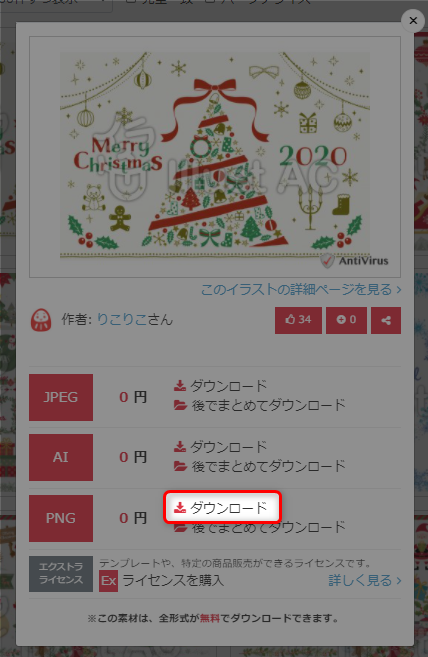 PNGの「ダウンロード」をクリック