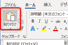 ホーム → 貼り付け をクリック