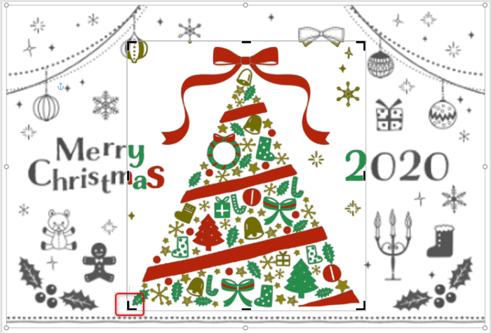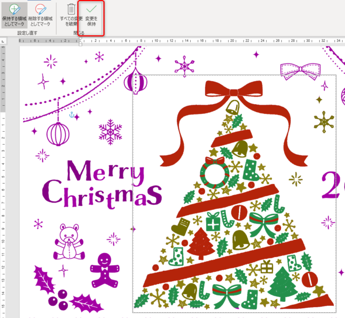 トリミング をクリックするとツリーを残してまわりの画像がカットされる