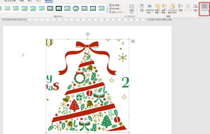 画像を選択し、図の形式 → トリミング をクリック
