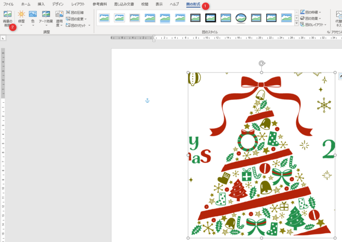 図の形式 → 背景の削除 をクリック