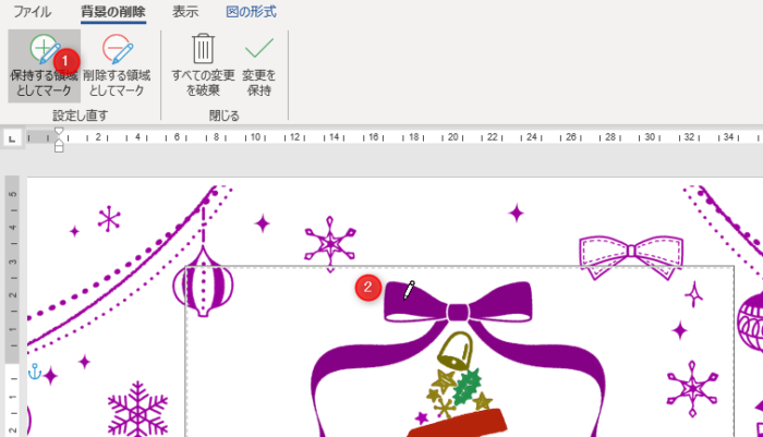 保持する領域としてマーク → リボンの上に移動してクリック