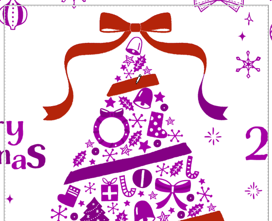 リボンがカラーになったが、今度はツリー部分が紫になってしまった
