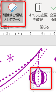 削除したい部分がカラーになってしまった場合は、画面上部の「削除する領域をマーク」をクリックしてマウスでカラー部分をクリックすれば紫色(削除部部分)に変わる