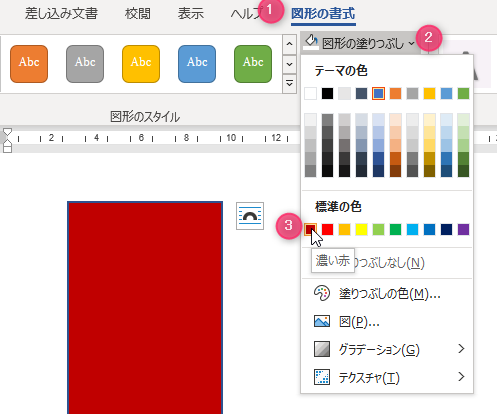 描画した図形の塗りつぶしを変更