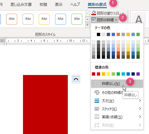 描画した図形の枠線を変更
