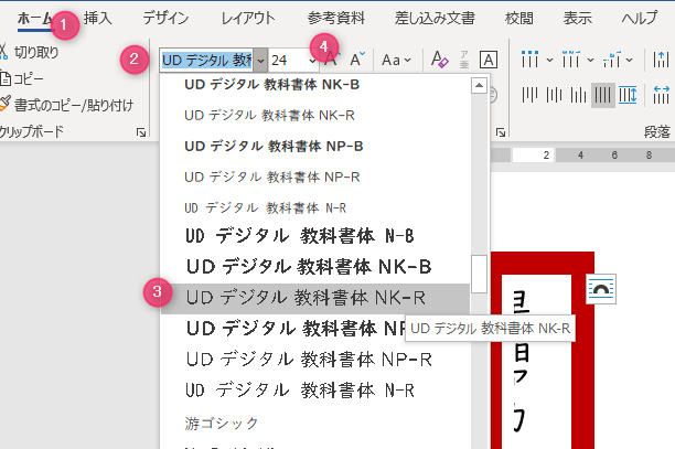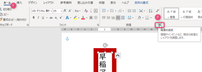 ワードでデザイン 文字書体の変更と位置の調整