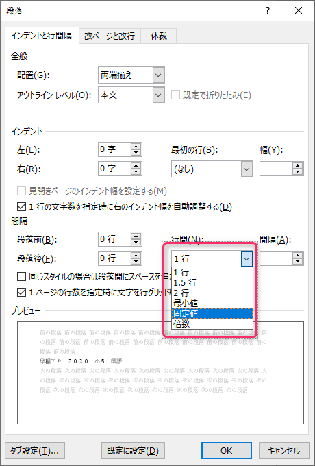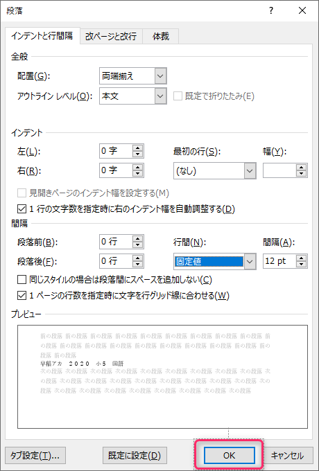 段落の設定画面で調整する