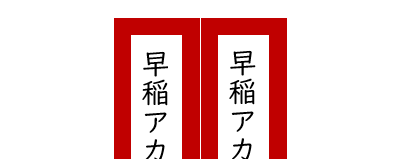 枠となる濃い赤の四角形、文字入れ部分となる白色の四角形、これらを綺麗に配置します。