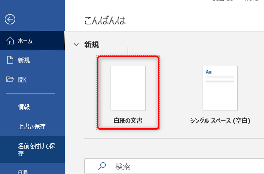 ワードを起動し、「白紙の文書」を開く