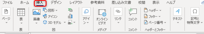 [挿入]タブをクリックした場合のリボン