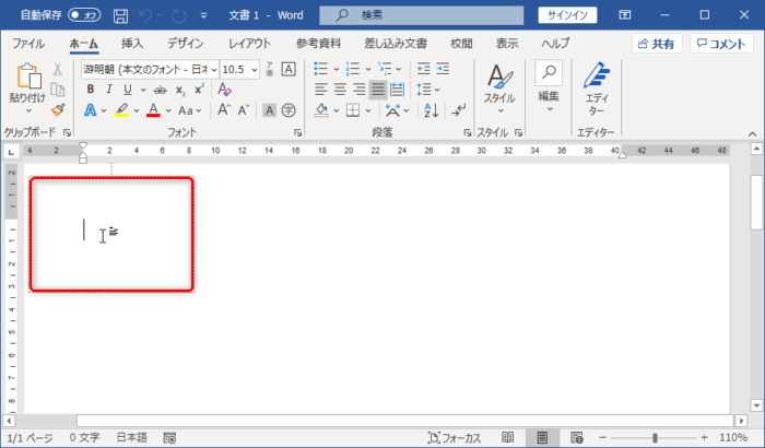 本文をクリックするとカーソルが表示され、ここから文字を入力出来る